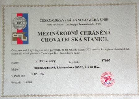 Reg. číslo CHS: 870/97 Certifikát CHS:Zobrazit Certifikát ::: Plánujeme vrh: 03.03.2011 Hodnocení: 92 bodů ze 100