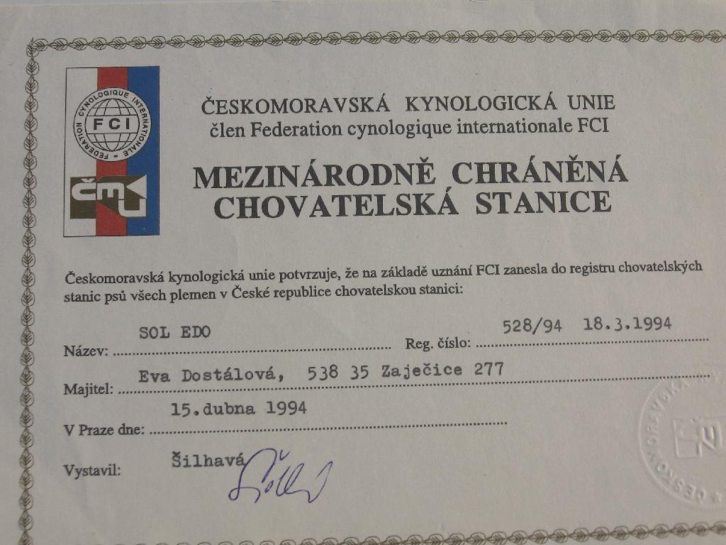 Reg. číslo CHS: 528/94 Certifikát CHS:Zobrazit Certifikát ::: Plánujeme vrh: 31.12.2013 Hodnocení: 100 bodů ze 100