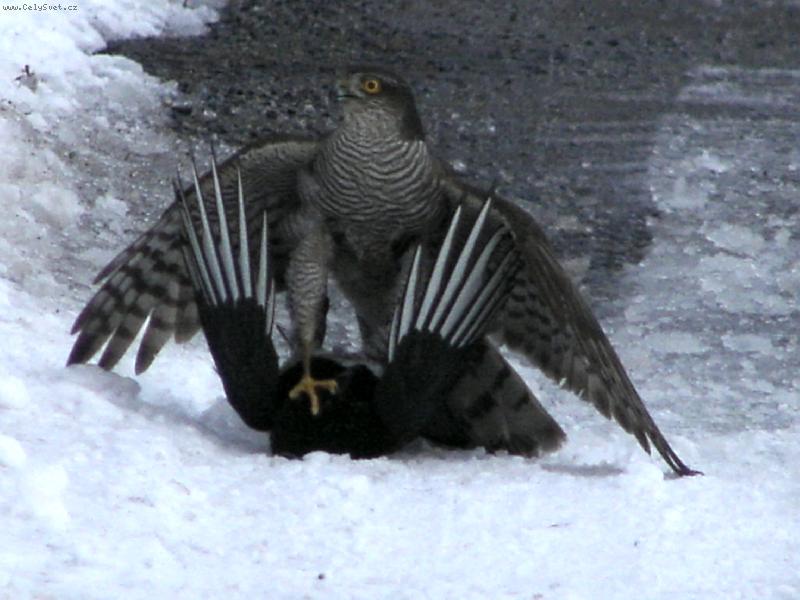 Krahulík s ulovenou strakou