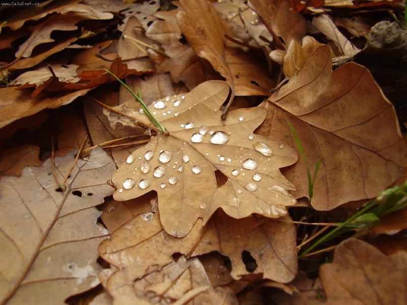 listí s kapkami deště