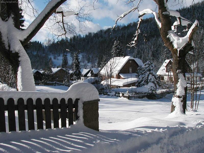 zimní pohled na domky ve Stříbrné