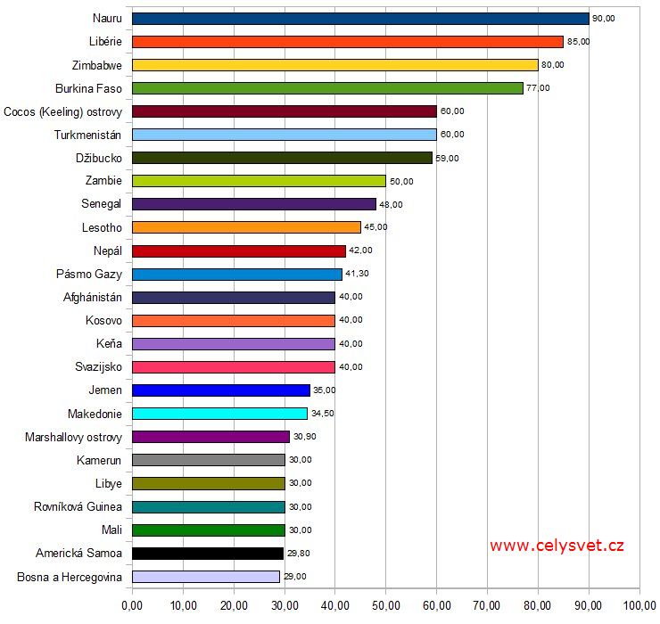 Míra nezaměstnanosti. Pořadí států