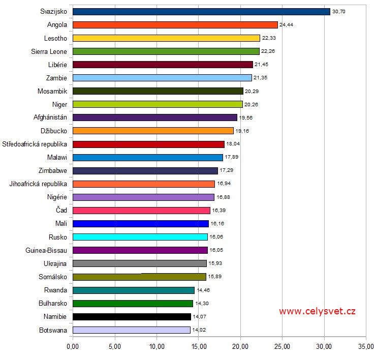 Úmrtnost. Pořadí států
