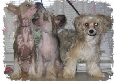Trejsy je chovná nahá fenka, velmi kvalitního exteriéru a výborné, nebojácné a živé povahy.Je většího rámce těla, silnější, tzv. "cobby typ", střední mezityp - výborně osrstěna na požadovaných partiích (a nejen na nich :-) ) Má velmi pěknou hlavu, naprosto rovná záda, vynikající úhlení a naprosto excelentní pohyb.Velmi ráda a pěkně se předvádí, což dokázala i na výstavách.Na své první výstavě se mezi 30 psy umístila na 5.místě o BIS Juniora celé výstavy a za měsíc na to na první mezinárodní vybojovala mezi šesti fenami ocenění Výborná 3.Trejsy nám prostě dělá radost a díky její povaze jsou číňani dalším miláčkem v rodině. Yohanka Powder od Chlípků